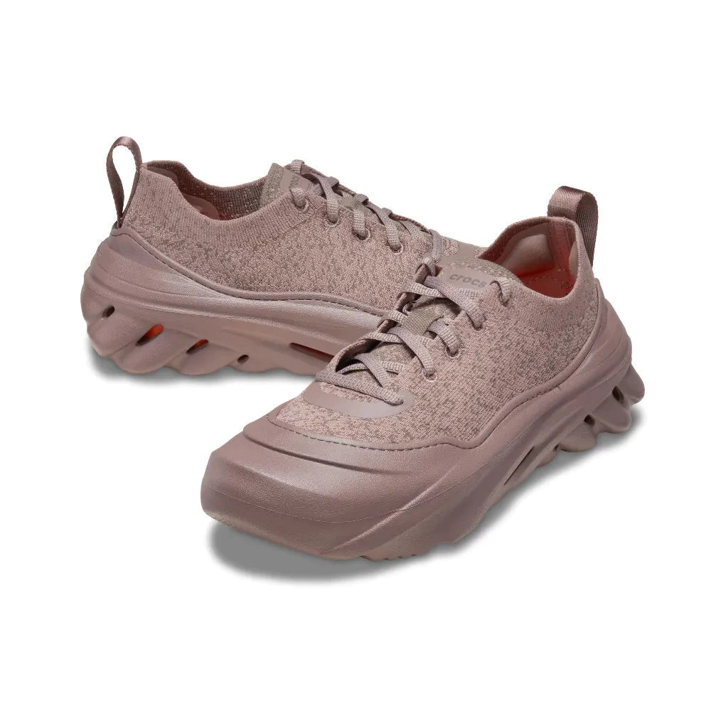 Ngay từ cái nhìn đầu tiên, Crocs Echo Surge gây ấn tượng mạnh với thiết kế độc đáo, phóng khoáng, mang dáng vẻ của một đôi giày thể thao sneaker thực thụ. Phần upper bằng vải dệt kim co giãn cao cấp giúp đôi giày ôm sát bàn chân mà vẫn đảm bảo độ thoáng khí tối ưu, mang đến cảm giác dễ chịu, khô thoáng suốt ngày dài. Nhờ khả năng linh hoạt tuyệt vời, Echo Surge dễ dàng thích nghi với từng chuyển động của bàn chân, phù hợp cho cả những ngày vận động liên tục hoặc dạo phố nhẹ nhàng.